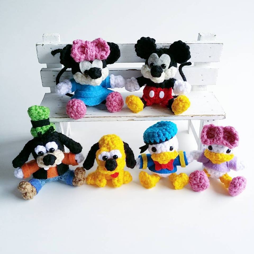 This crochet pattern set includes: Mickey, Minnie, Donald, Daisy, Goofy, Pluto and Scrooge McDuck